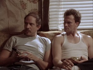 Verstärkt wird diese Wirkung noch durch die Figur des Otis. Otis ist ein Proll, wie er im Buche steht und man sieht ihm deutlich an, dass mit ihm etwas nicht stimmt. Er ist nicht nur äußerlich ein eher unangenehmer, ungepflegter Zeitgenosse, sondern er benimmt sich auch so, wie man es von solch einer Type erwartet. Mit Otis würde man kein Bier trinken gehen und träfe man ihn auf der Straße, würde man darüber nachdenken, die Seite zu wechseln. Nicht so bei Henry. Henry wirkt demgegenüber vollkommen normal, was es für das Publikum noch weitaus unheimlicher und verstörender macht. Man erkennt das Böse nicht mehr, es kann überall sein.