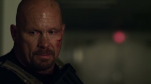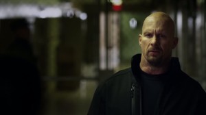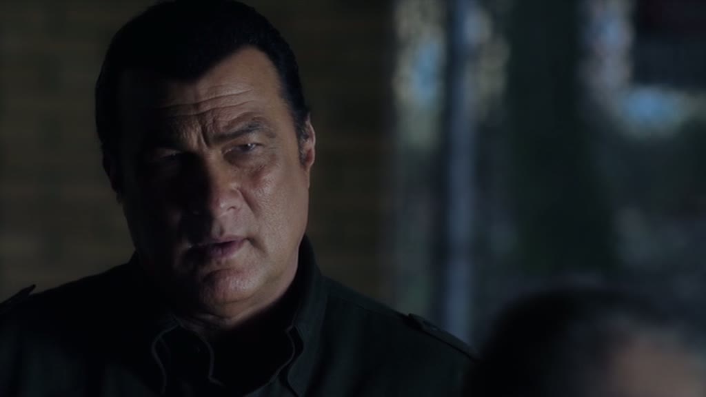 Nicht erst seit den „Expendables“ ist es Mode, zwei Action-Stars zusammenzukoppeln. Zwar sind Segal und Austin nicht Stallone und Schwarzenegger, aber als B-Movie-Team-Up funktioniert die Sache ganz gut. Große Chemie entwickeln die beiden zwar nicht, dafür haben sie auf dem Bildschirm auch viel zu wenig Zeit miteinander, aber wegen ihrer abgeklärten und ruhigen Art nimmt man ihnen durchaus ab, dass sie seit Jahren zusammenarbeiten. Steve „Stone Cold“ Austin war mir aus seligen „Super Channel“-Zeiten noch als WWF-Wrestler bekannt. Dass er mittlerweile auch als Actionheld seine Rente aufbessert, hatte ich nur am Rande mitbekommen. Steven Segal ist natürlich eine Legende, auch wenn ich gestehen muss, dass ich ihn das letzte Mal bewusst in „Alarmstufe: Rot“ gesehen hatte, als er noch halb so breit war wie heute. Von seinem Auftritt in dem – meiner Meinung nach völlig misslungenen, aber von den Fans geliebten – „Machete“ einmal abgesehen. Segal lebt von seinem Ruf, der ihm seit seinen ersten Filmen Mitte der 80er vorangeht. Dass dieser große, schwerfällige und völlig aus dem Leim gegangene Mann noch zu blitzschnellen Aktionen und körperlich anspruchsvollen Kämpfen fähig ist, dürfte keiner so recht glauben. Aber es ist die Ikone Steven Segal, die hier kämpft und von daher reicht die Behauptung, dass es so wäre, vollkommen aus. Es ist ein wenig wie bei Bud Spencer, dessen mörderischen Dampfhammer in seinen späten Filmen auch niemand hinterfragte, nur weil er sichtbar alt und schwerfällig geworden war.