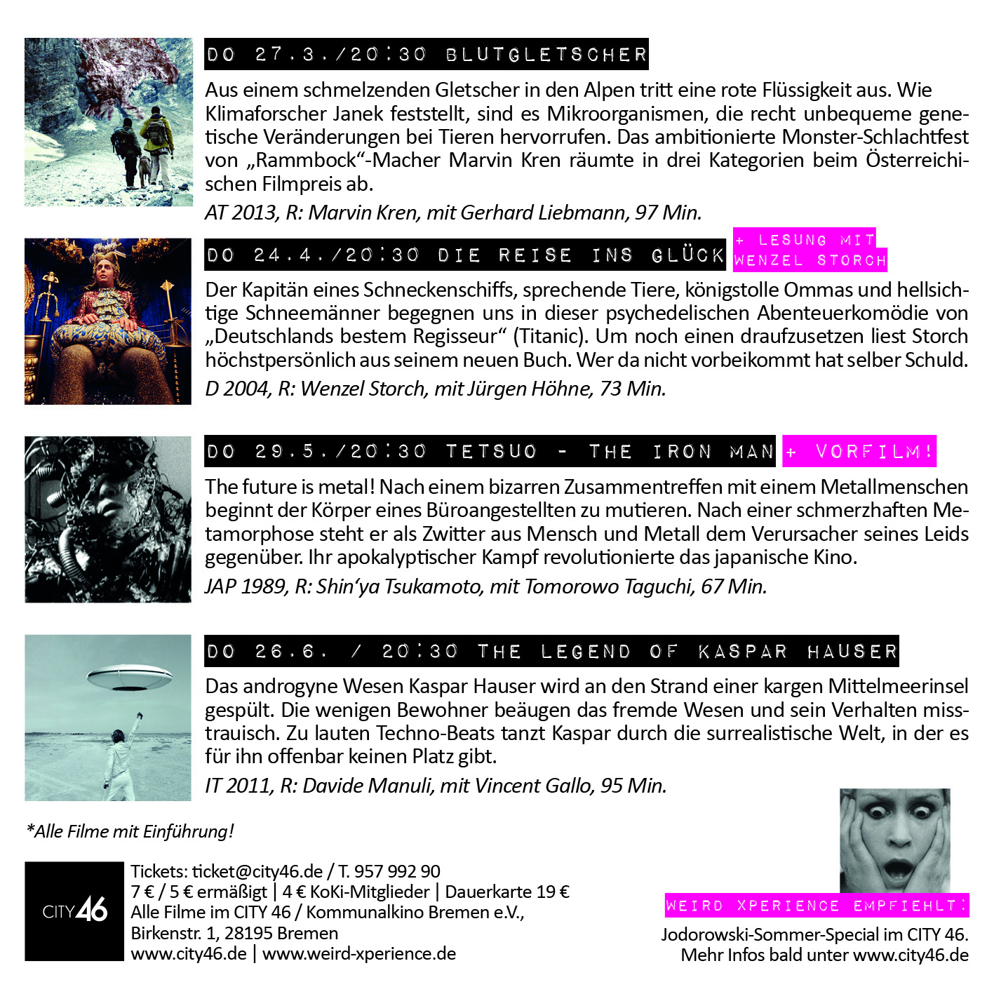 Nach einer kleinen Zwangspause meldet sich unsere Reihe “Weird Xperience” im Bremer Kommunalkino City 46 im März wieder zurück.