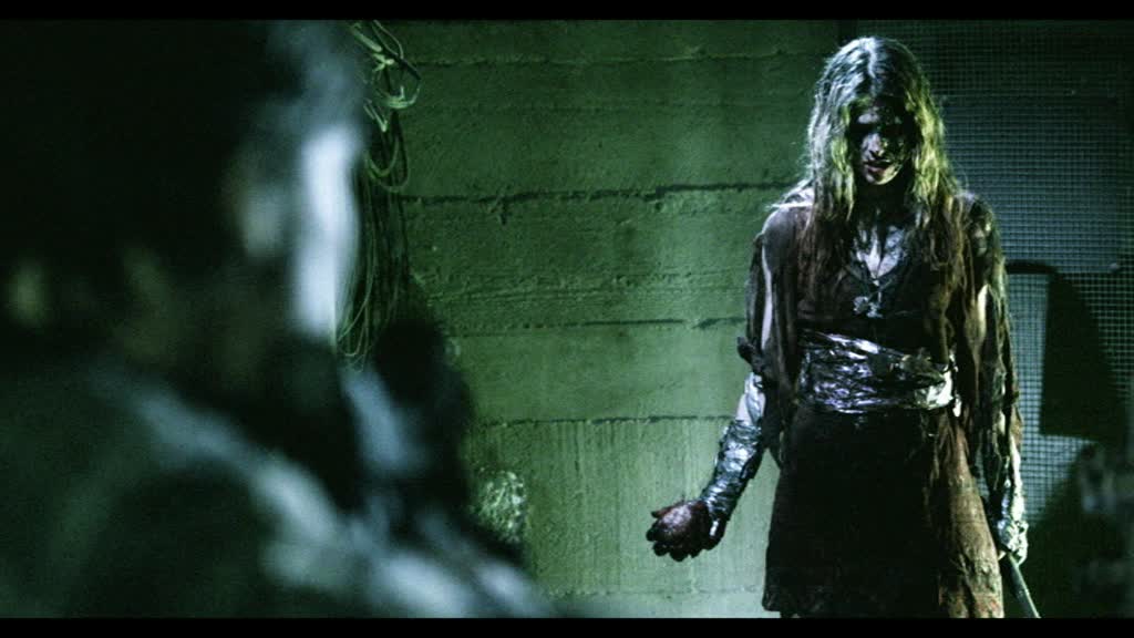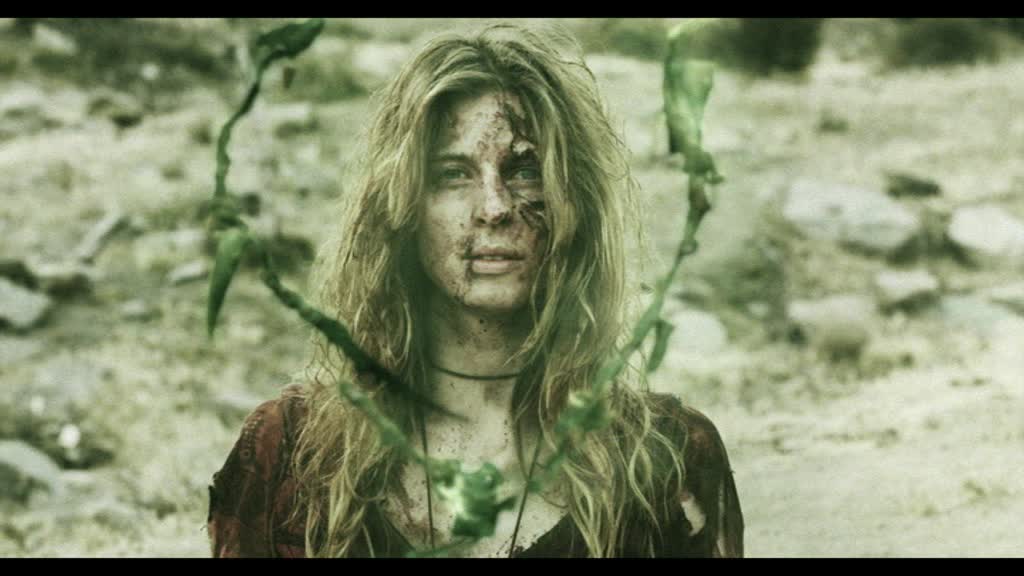 Wenn man sich die Inhaltsangabe des Films „Savaged“ durchliest, greift man sich zunächst einmal an den Kopf. Rape & Revenge ala „Ich spuck auf Dein Grab„, trifft indianische Rache-Geister und weil das nicht reicht, wird noch ein langsam verrottender Zombie mit in den blutigen Auflauf gemischt. So etwas würde man eher von einer pubertären Amateurproduktion und nicht von einem professionell gedrehten US-Spielfilm erwarten. Nun, von Amateuer-Splatter ist „Savaged“ dann auch meilenweit entfernt. Dass hier Profis am Werk waren, merkt man an den werbeclip-artigen Bildern und der etwas aufdringlichen Bildbearbeitung. Und leider auch an der trotz blutig-matschiger Bilder etwas biederen Herangehensweise. Wobei bieder vielleicht der falsche Ausdruck ist. Der Film haut schon ziemlich auf den Tisch und strotzt vor kruden Ideen. Z.b. wird ein Charakter mit seinem eigenem Darm erwürgt, und auch die Szene in der die Heldin sich aus ihren Fesseln aus Stacheldraht befreit, ist schmerzhaft anzusehen. Aber irgendwie fehlt dem Film dann doch der letzte Mut zur Grenzüberschreitung. Nacktheit wird gar nicht gezeigt, die Misshandlung der Heldin findet auch überwiegend im Off statt. Erst sie schon zum Zombie mutiert ist, hält die Kamera voll drauf. Wobei das Make-Up, welches sie als Zombie trägt, auch eher dezent ist, und man die Schauspielerin darunter immer noch (zu?) gut erkennt. Natürlich bewegt sich „Savaged“ in vielen Szenen immer an der Grenze des gefahrlos Zeigbaren, aber eine schockierende Überschreitung dieser Linie, die diesem Film vielleicht gut getan hätte, findet eben nicht statt. Alles bleibt im Rahmen dessen, was im Mainstreambereich gerade noch akzeptabel ist.