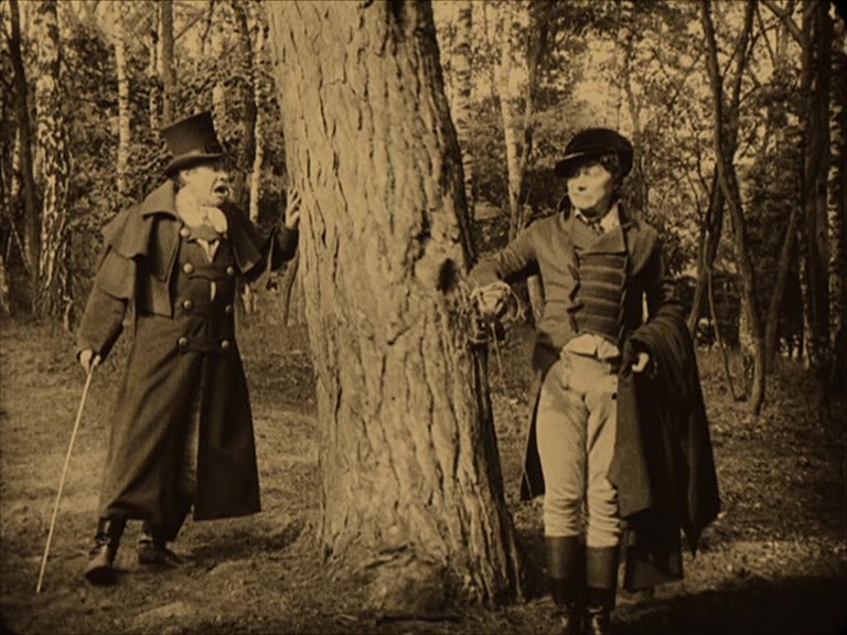 Rätselhaft bleibt, wer letztendlich „Der Student von Prag“ inszeniert hat. Während die DVD den Autoren Hanns Heinz Ewers als alleinigen Regisseur aufführt, hatte ich den Film immer seinem Hauptdarsteller Wegener – der später den berühmten „Der Golem, wie er in die Welt kam“ drehen sollte zugeordnet. In manchen Quellen taucht auch der dänische Regisseur Stellan Rye auf. In der IMDb wird er neben Wegener als Co-Regisseur geführt. Wie dem auch sei, „Der Student von Prag“ war ein Meilenstein der Filmgeschichte. Trotz seiner sehr frühen Entstehungszeit.1913 war das Kino ja gerade mal 18 Jahre alt und technisch revolutionäre Filme wie „Die Geburt einer Nation“, der ja als Beginn des modernen Kinos gilt, waren auch noch zwei Jahre entfernt. Natürlich hat „Der Student von Prag“ noch viel Theaterhaftes, vor allem bei den Sets, die sehr eindeutig als Bühnen erkennbar sind. Doch es wurden auch schon viele Außenaufnahmen an Originalschauplätzen im alten Prag verwendet. Auch die Kameratricks sind noch heute höchst beeindruckend. Die Aufnahmen in denen Balduin mit seinem bösen Ich konfrontiert wird, müssen dem Publikum damals ähnlich den Atem haben stocken lassen, wie die revolutionären CGI-Effekten in „Terminator 2“ oder „Jurassic Park“ den Zuschauern Anfang der 90er Jahre.
